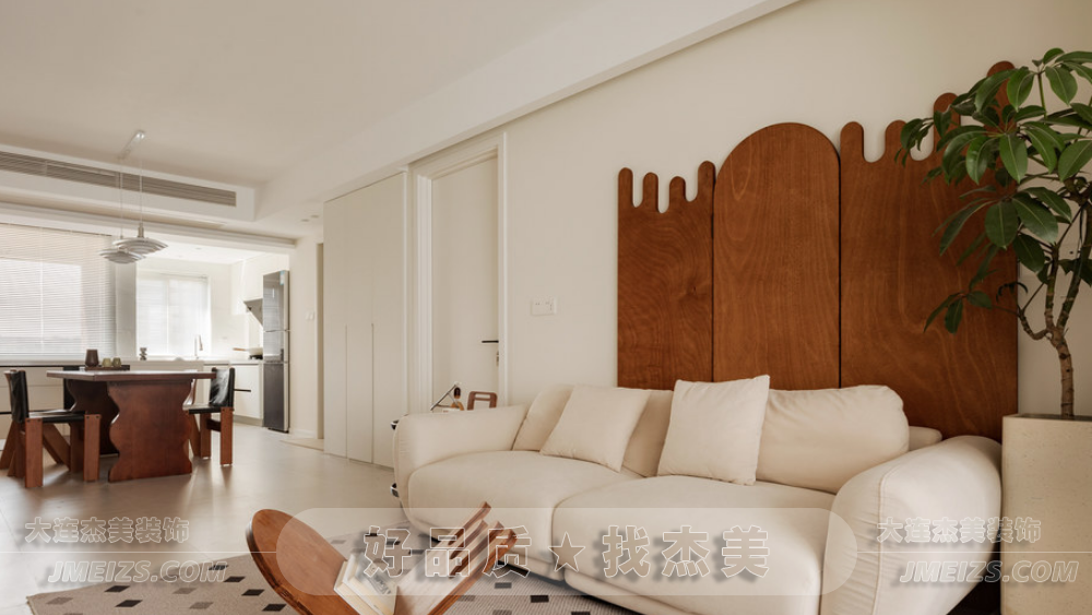 在客廳的硬裝設(shè)計(jì)中,我們延續(xù)了胡桃木加奶油白的設(shè)計(jì)風(fēng)格,營(yíng)造出舒適、溫馨的氛圍。