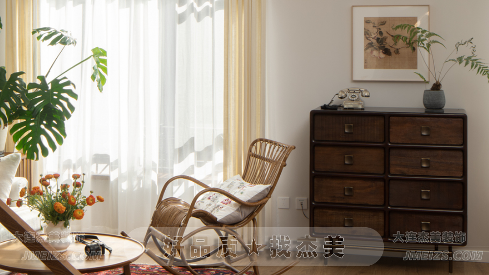 那舊時的床頭柜,在波西米亞與自然風(fēng)的韻律下,變身為一個極具藝術(shù)感的玄關(guān)柜。