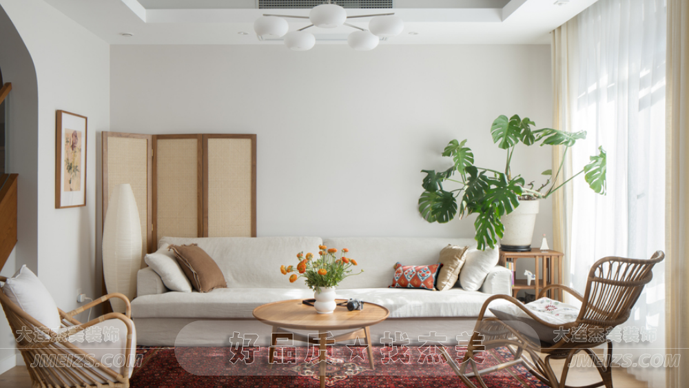 在本案設(shè)計(jì)中,亞麻、羊毛和藤編都與自然和諧共生,營造出一種輕松、自由的氣息。
