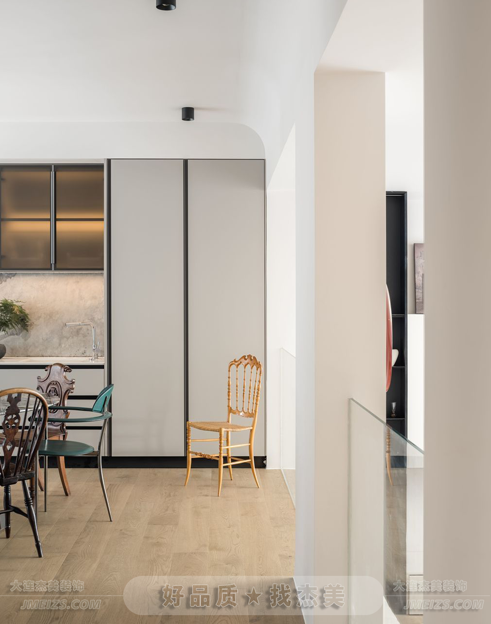 餐廳內(nèi)還有設(shè)計師多年收藏的中古椅和古董椅,這些椅子來自不同的年代和設(shè)計流派,放在一起產(chǎn)生了戲劇性的藝術(shù)感。