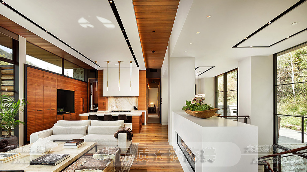 充滿現(xiàn)代感和自然氣息的開放式廚房: