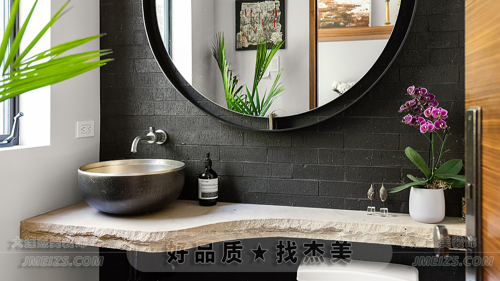 本案洗漱間是一個完美融合了自然元素和現(xiàn)代設(shè)計的空間。