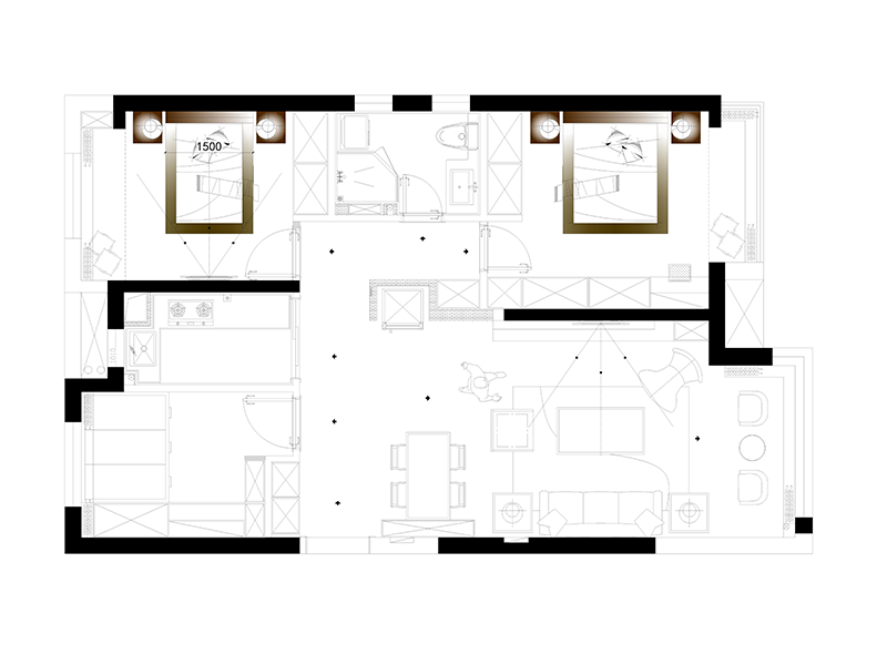整體是直線設(shè)計,擴大空間感,原木色的墻板給空間增加暖的感覺,通鋪900*900的理石紋理瓷磚,使整個空間更加通透,陽臺與客廳平頂拉門使獨立的陽臺融入整個客廳,是整個客廳增大。主臥室設(shè)計與客廳設(shè)計風(fēng)格形成呼應(yīng)讓整個空間達(dá)成一致,北面兩個臥室一個老人房一個兒童都采用暖色的色調(diào)讓北向的房子冬天沒有冷的感覺。