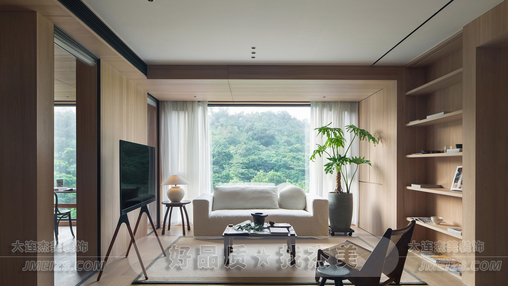 在色彩搭配上,設(shè)計(jì)師主要使用了原木的自然色和白色,這兩種色彩的結(jié)合既簡潔又大氣,給人一種清新自然的感覺。同時,通過在某些地方添加一些亮色,如綠色的植物、彩色的抱枕等,使得整個空間更加生機(jī)和活力。