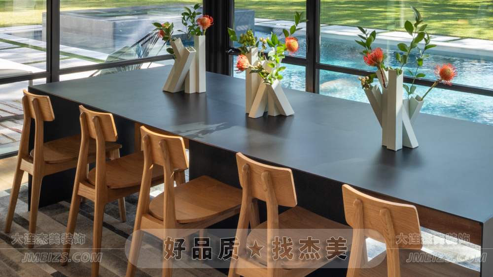 餐廳的設(shè)計(jì),充分考慮了與自然的關(guān)系。三面的落地窗,使餐廳與外界的自然景色完美融合,為家庭成員提供了一個(gè)與自然親近的用餐空間。綠樹、陽光、藍(lán)天,每一餐都仿佛在大自然中享受,使用餐變成了一種與自然親近的體驗(yàn)。